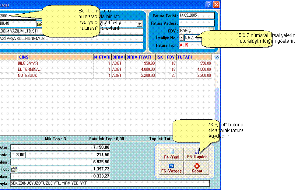 İrsaliye No : Bu numarayı, program otomatik olarak verecektir.