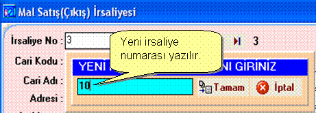 Numarası Giriniz” penceresine yeni irsaliye numarası yazılır ve