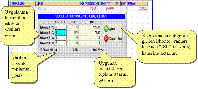 Satırın İskonto Giriş Ekranı” gelir.