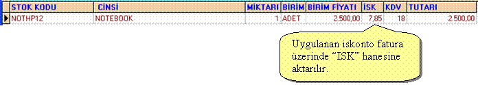 iskontosu, KDV, tutarı) ekrana gelir.